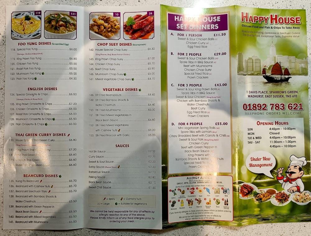 Happy House is located at 1 Davis Pl, Sparrow's Green, Wadhurst TN5 6TE. This spot has become a local favorite for its delightful mix of Chinese cuisine and classic English fare, notably their fish and chips, which have earned rave reviews. The location is easily accessible, featuring a wheelchair-friendly entrance and seating. Street parking is available for those visiting by car, making it convenient for both locals and visitors alike. Open every day of the week, Happy House can easily accommodate spontaneous cravings for a cozy dinner or a quick takeaway. Reservations are accepted, but the venue can be quite busy, especially during dinner hours, so it's wise to call ahead. The vibrant atmosphere pairs well with the variety of dishes available, creating an inviting space for everyone.